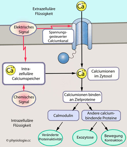 Erhöhung der intrazellulären Calciumkonzentration → Bindung an Proteine → veränderte Funktion