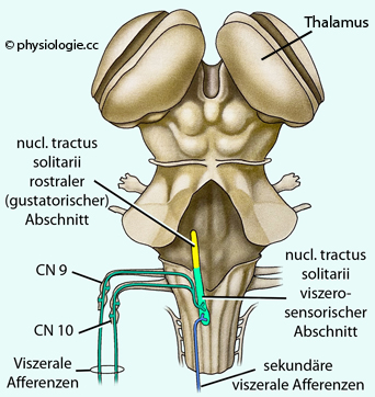 Von den Eingeweiden ziehen afferente (viszerosensible) Fasern zum ZNS (über N. facialis, glossopharyngeus, vagus, Beckennerven).