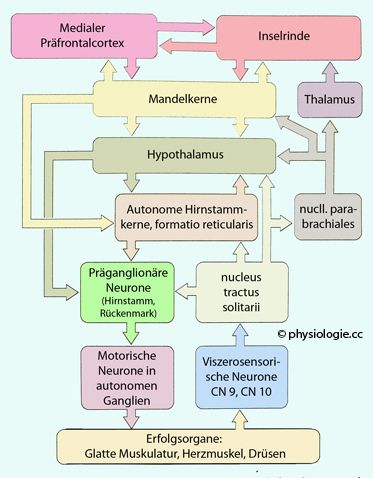 System und Hypothalamus steuern das autonome Nervensystem. Je nach