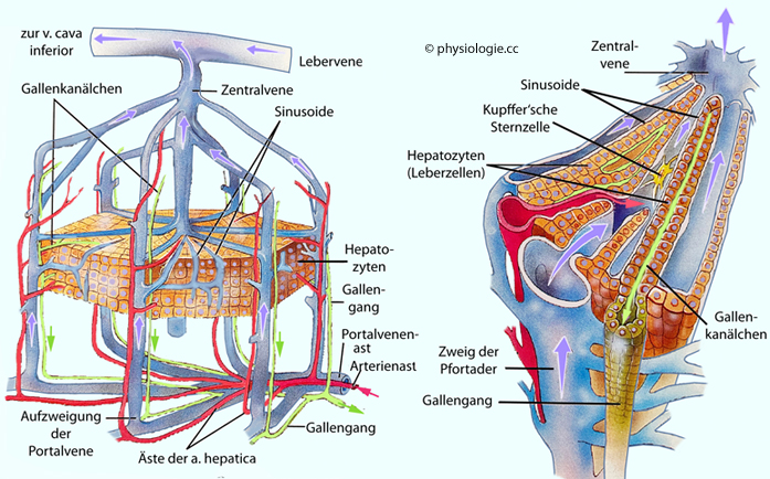 portalen Azinus orientiert sich am Gefälle des Sauerstoffpartialdrucks im Lebergewebe.