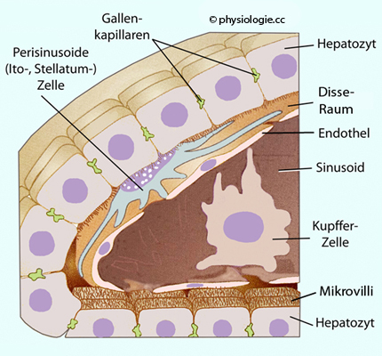 (nicht gezeigt) im Disse'schen Raum liegen den Sternzellen oder Endothelzellen direkt