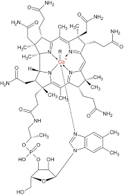Glykogenabbau, GABA-Synthese u.a.). Der Tagesbedarf (Männer 1,5, Frauen 1,2 mg/d) steigt mit dem Proteinumsatz. Vitamin B12 (Cobalamine; Tagesbedarf 2-3 µg, die Leber speichert bis zu 10 mg; auch die Darmflora bildert Vit.B12)