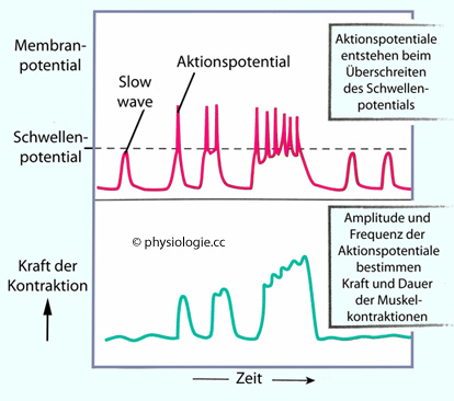 Abbildung: Auslösung von Aktionspotentialen in der Darmmuskulatur