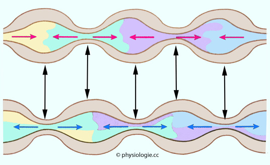 Sekretion. Kollateralen zu Blutgefäßen bewirken verstärkte Perfusion und unterstützen die Sekretion. Histamin wirkt sekretionsfördernd Peristaltik
