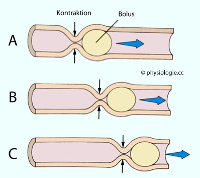 durchschnittliche Transportgeschwindigkeit 1-4 cm/min, die Transportperistaltik bewegt sich mit 30-120 cm/min voran); und