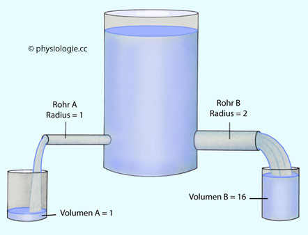 Unter Berücksichtigung der Gefäßaufzweigungen im Kreislauf ergibt sich, dass die hydrodynamische Leitfähigkeit des