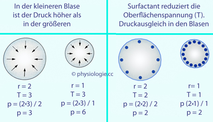 Surfactant reduziert den Aufwand. Die Bildung von Surfactant ist ein