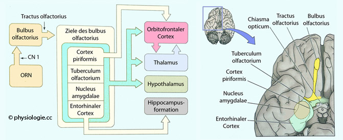 Zentrale Verarbeitung: Aus dem bulbus olfactorius erfolgen Projektionen