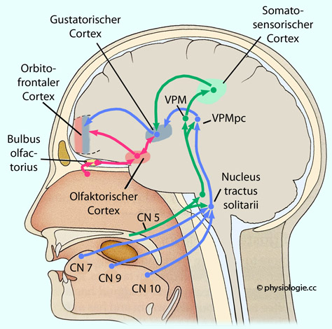 der Entstehung von "Geschmack" beteiligt ist (Speisen erscheinen