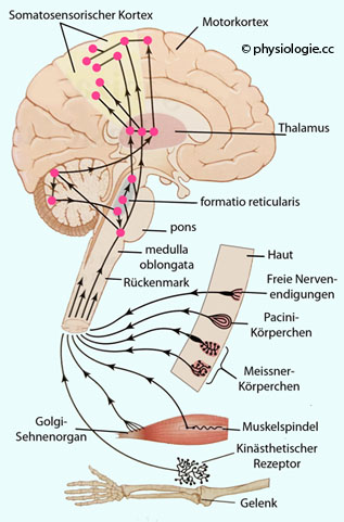 Sehnen, Gelenke etc) als Tiefensensibilität, beide zusammen als somatische Sensibilität oder Somatosensorik
