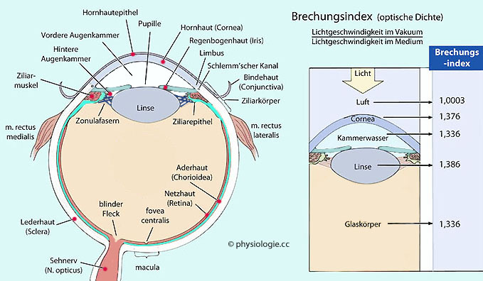 / Lichtgeschwindigkeit im Medium. Wasser (1,33) bzw. Tränenflüssigkeit