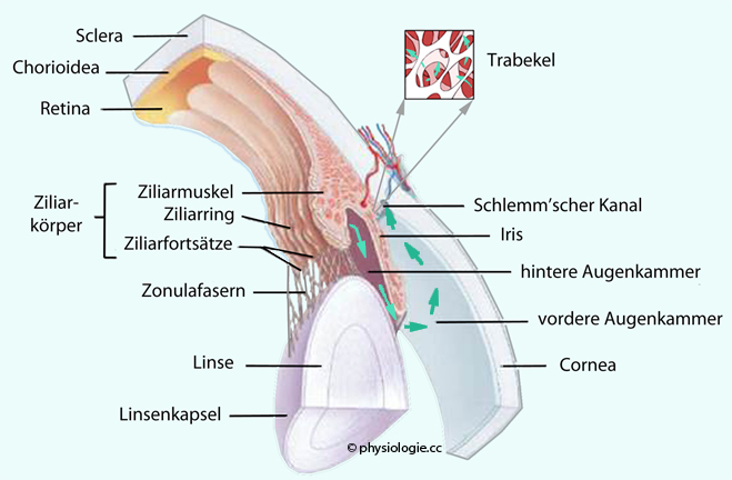 des Kammerwassers erfolgt von der rückwärtigen zur vorderen Augenkammer