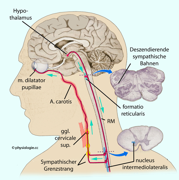 (ziliospinales Zentrum C8-Th2) → truncus vasosympathicus → Kontraktion