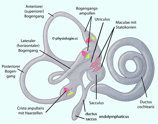 Sensomotorik an, wo oben und unten ist oder welche zusätzlichen Beschleunigungskräfte einwirken (das Gehirn verfügt über eine präzise "Karte" der Orientierung der Zilien in den Maculae). Das dient der Orientierung des