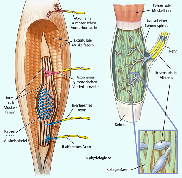 Ib-Fasern), Lagesinn (Muskelspindeln: Ia- und II-Fasern, γ-Motorik) und