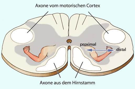 motorischen Vorderhornzellen zufließen. Diese "unteren Motoneurone" innervieren die Skelettmuskeln.