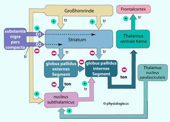 dopaminerge Einflüsse aufgeschaltet (exzitatorisch und inhibitorisch).