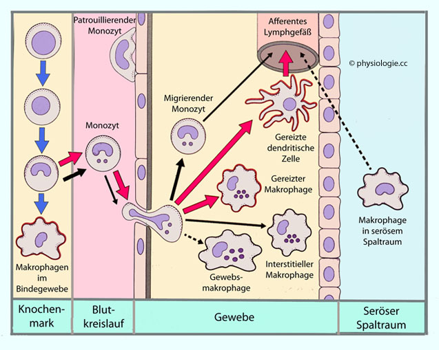 Viele Gewebemakrophagen: Stammzellen in Dottersack / fetaler Leber Entzündung: Knochenmark-Stammzelle |