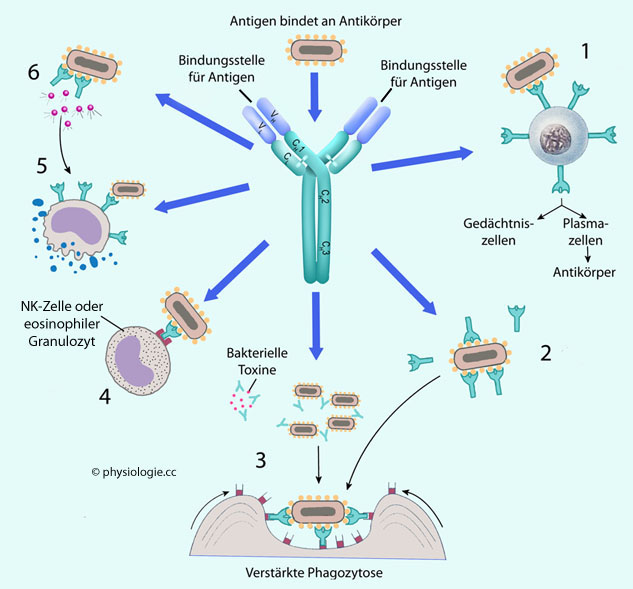 Antikörper werden von B-Zellen bzw. Plasmazellen gebildet und binden