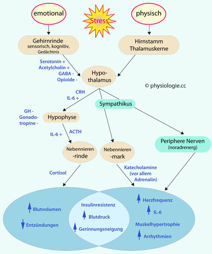 So wird z.B. Schmerz als Stress empfunden und löst dementsprechende Reaktionen aus.