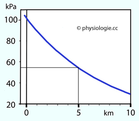 Etwa in 5500 m Höhe beträgt der Luftdruck (und damit die Partialdrucke